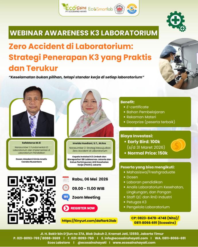 PT Ecosains Hayati is an official laboratory equipment distributor located in East Jakarta, equipped with a warehouse that has a sufficiently large capacity for storing spare parts and fast-moving units. There are demo units and training rooms available for customers to observe instruments directly and conduct trials of equipment usage.