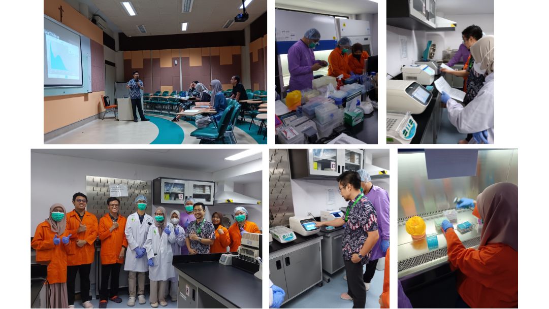 Pada hari pertama, dengan sub tema "Fundamentals of Genomic DNA Isolation and Quality Assessment", pelatihan difasilitasi oleh dr. Sem Samuel Surja di Ruang D-109, Biologi Molekuler dan BSL2. Peserta mempelajari prinsip ekstraksi DNA serta metode silica-based spin column yang umum digunakan di laboratorium. Setelah praktik, dilakukan pengukuran konsentrasi dan kemurnian DNA menggunakan nanospektrofotometer.